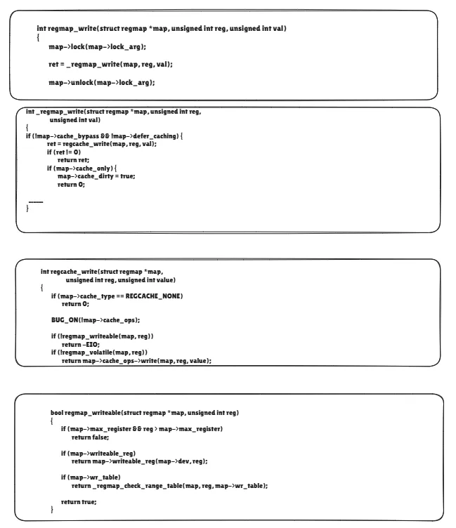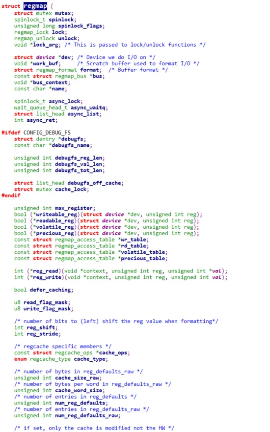 struct regmap *regmap = devm_regmap_init_i2c(client, &config); // I2C设备// 读写寄存器intregmap_write(struct regmap *map, unsignedint reg, unsignedint val);intregmap_read(struct regmap *map, unsignedint reg, unsignedint *val);