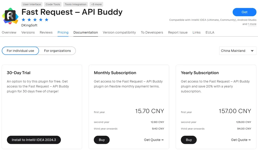 MyBatisCodeHelperPro还有最牛的Fast Request,集API调试工具 + API管理工具 + API搜索工具一体!157/年。