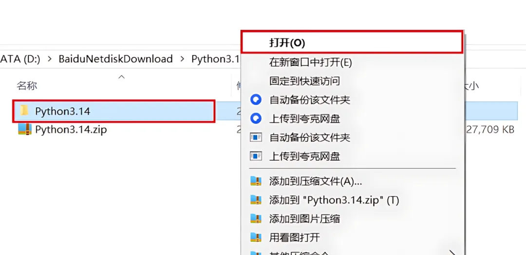 1.打开下载的Python 3.14.0软件安装包,鼠标右击压缩包选择【解压到Python 3.14.0\(E)】。