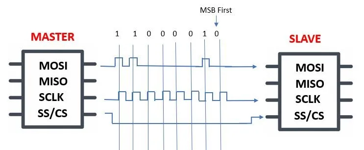 SPI接口通常有4根线,分工明确:SCLK(串行时钟线,主设备输出时钟)、MOSI(主机输出/从机输入数据线)、MISO(主机输入/从机输出数据线)、SS(从机选择线,低电平有效)。工作时,主控SoC作为“主设备”,外设作为“从设备”,要和某个外设通信时,就把该外设的SS线置低,相当于“点名呼叫”。