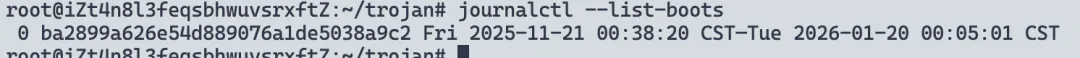 系统重启后,日志往往会被“打断”,journalctl 可以按启动次数查看。1. 查看启动记录