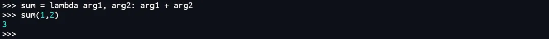 # 传递参数 arg1,arg2 执行 arg1 + arg2sum = lambda arg1, arg2: arg1 + arg2