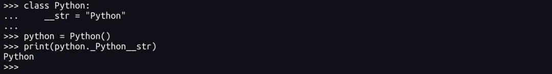 class Python: __str = "Python"python = Python()print(python._Python__str)