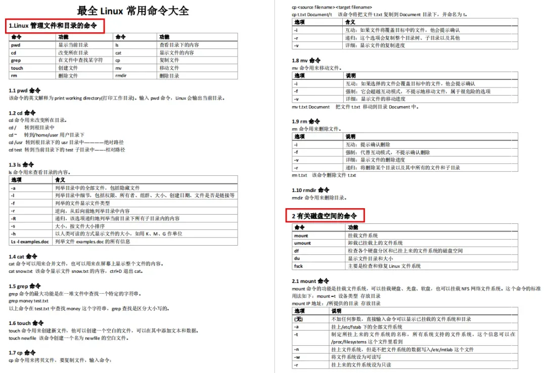 这份Linux命令大全完整版很适合作为补充使用,按照功能分类,功能说明、语法、参数一目了然。