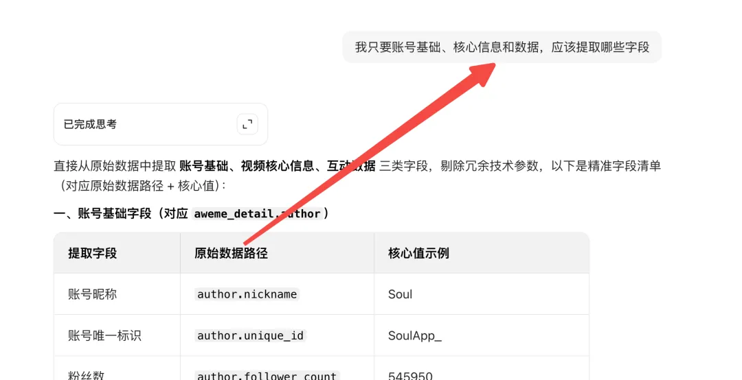 豆包会把你想要的数据字段都帮你提取,然后你只要在输出结果中找对应的字段就可以了