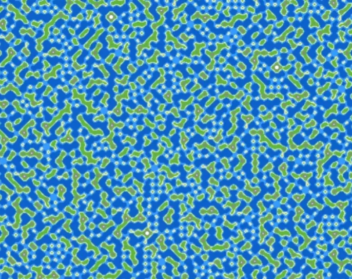 我们可以用2D噪声生成平面的地形图,衔接非常自然,你可以根据噪声值填充不同的美术素材。
