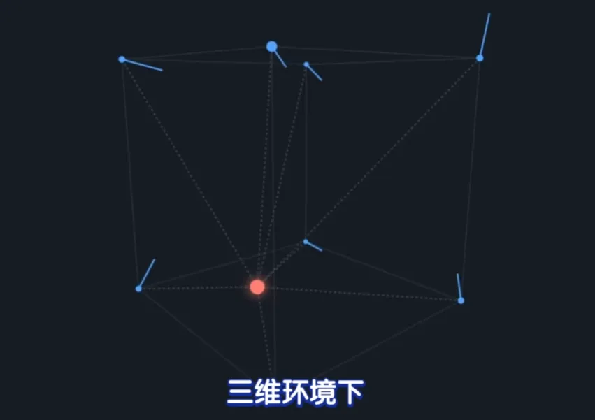 最后,我们可以将其推广到3D柏林噪声。3D环境下采样点受周围8个顶点的影响,需要进行7次插值。