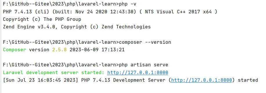 F:\GitHub--Gitee\2023\php\lavarel-learn>php artisan --version