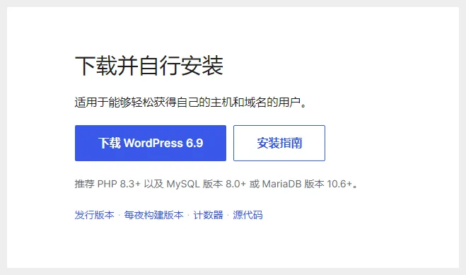 然后去 WordPress 官网下载最新版源码(zip 包)。可以直接下载到服务器里面,也可以下载到自己本地电脑再上传
