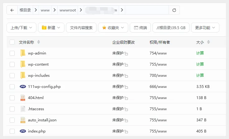 解压后,把 wordpress 文件夹里的所有内容剪切出来,放到网站根目录下。