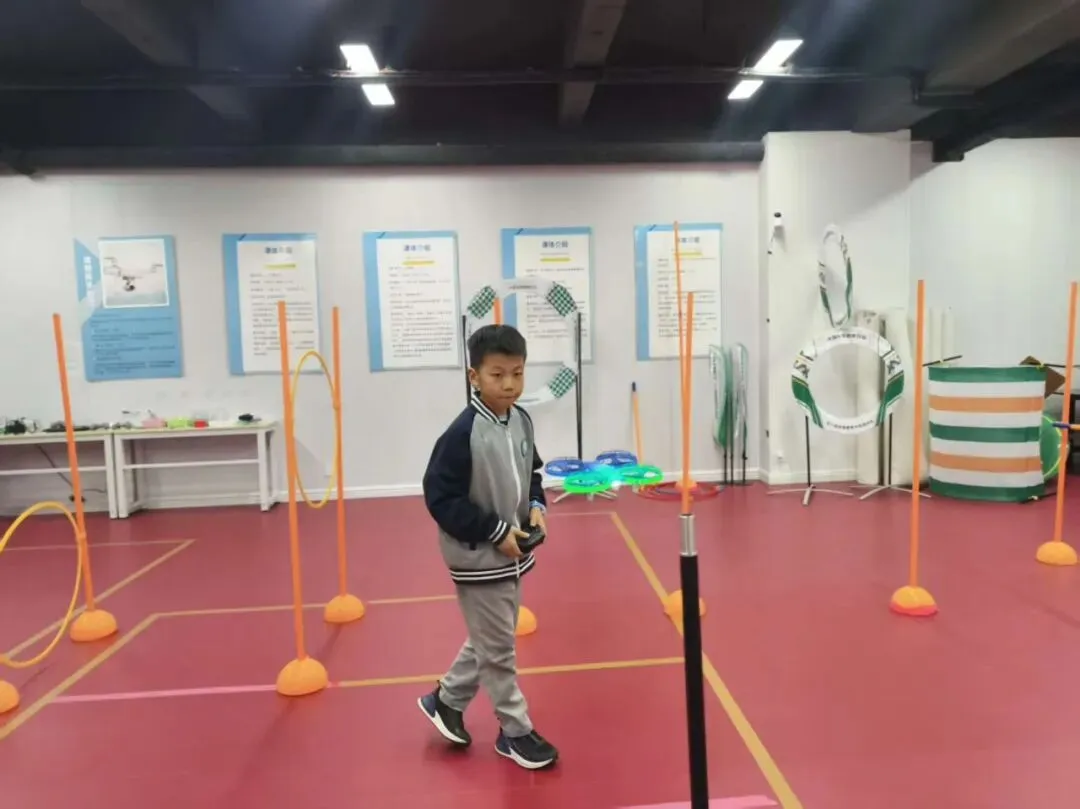 无人机课程是最容易让孩子产生兴趣的项目,但也是最考验“规则意识”与“全局思维”的课程。很多家长觉得无人机就是“飞着玩”,却忽略了它背后的教育价值。每次开设无人机课程,我都会先花一节课讲“飞行规则”:远离人群、机场、高压线,在空旷区域飞行;飞行前检查设备,规划飞行路线;遇到突发情况如何紧急降落。这些规则,不是束缚孩子的枷锁,而是教会他们“在自由中守住边界”。有个男孩第一次接触无人机时,兴奋地只顾猛推摇杆加速,没控制好高度和方向,结果无人机蹭到障碍,螺旋桨受损。我们没有批评他,而是和他一起分析原因:“操控时只追求速度,忽略了摇杆力度与高度、方向的配合,也没留意周边环境。” 后来,这个男孩每次操控前,都会先熟悉场地边界,反复练习摇杆力度控制,慢慢掌握了“轻推微调、稳控方向”的技巧,再也没出现过失误。无人机操控看似简单,实则藏着不少学问,更能帮孩子直观理解基础物理知识——摇杆力度决定飞行速度,方向杆的微调对应机身姿态变化,这背后是力与运动的基础原理。操控训练中,孩子需要时刻关注机身位置、场地边界,手眼协调能力和专注力能得到快速提升。更难得的是,当孩子从生疏到熟练地操控无人机完成悬停、绕桩、直线飞行等动作时,那种突破自我的成就感,能极大激发他们的探索欲和自信心,这是书本无法给予的成长养分。四、 写给家长:教育的本质,是赋能而非功利