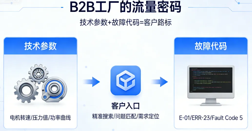 你的产品手册里那些枯燥的技术参数,和售后记录里积灰的故障代码,是同行看不懂、但精准客户正在疯狂搜索的“黄金关键词”。