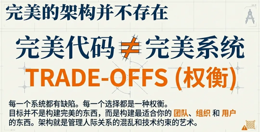 它关乎理解纸面上的完美解决方案可能并不最适合你的团队。它关乎保持灵活性,适应不断变化的需求,并平衡构建软件的人的需求与使用软件的人的需求。