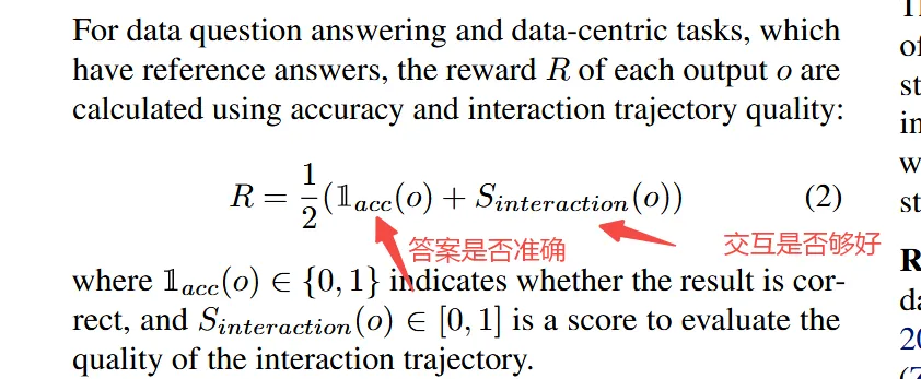 通过多智能体模拟合成的完整交互日志的数据,2.6万条。让模型知道“要先understand理解问题,然后分析,然后写代码,写完代码要等执行结果、”,将单项能力串联成工作流。如果没有这一步直接上 RL,模型会因为完全不懂交互规则而拿不到任何奖励(Reward Sparsity)。第一阶段SFT 后的模型只懂单个技能(如写代码、读表格),不懂多步流程(如先加载数据→再清洗→再分析)。直接丢进真实数据环境,模型会 “瞎操作”(比如没加载数据就写分析代码),几乎拿不到正向奖励,训练根本推进不下去。