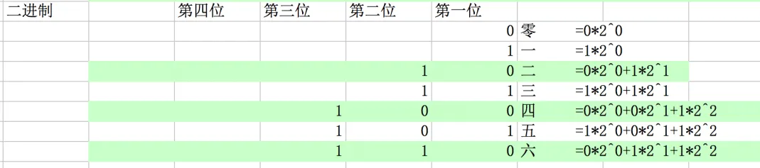 二进制: 每一位只允许出现0~1这二个数字,逢二进1,基是 二, 每一位数字有一个权值大小是二的幂次。