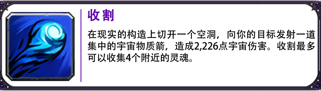 在虚空变形状态下收割会被强化为剔除,造成更高伤害。