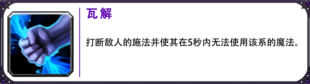 群体控制技能,“至暗之夜”版本中,复仇与浩劫的邪能新星控制时间回调回3秒;噬灭控制时间为2秒,但可远程施放,是对目标技能。