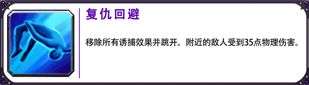 核心位移技能,与复仇大跳浩劫冲锋一样为路径位移技能,穿过即时出伤技能时会受到伤害。