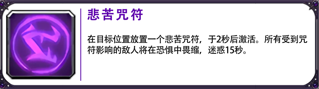 与复仇、浩劫的悲苦相同,控制技能。悲苦咒符可以配合影遁跳怪。