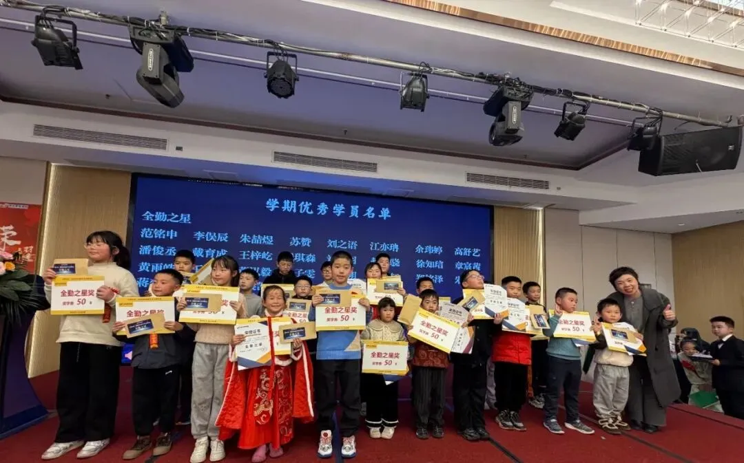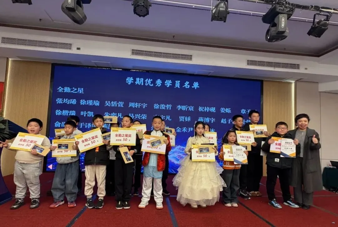 学期优秀学员奖: 当获奖学员的名字被逐一念出,孩子们的脸上瞬间绽放出灿烂的笑容,眼神中满是自豪与喜悦。在全场家长的热烈掌声与殷切注视下,他们挺直脊背,迈着自信的步伐踏上红毯,一步步走向舞台中央。田校长手持荣誉证书与奖牌,依次为孩子们颁奖,颁发证书时还会轻轻拍拍他们的肩膀,用无声的动作传递着对这份优异表现的认可,更饱含着对他们未来继续前行的鼓励与期许。
