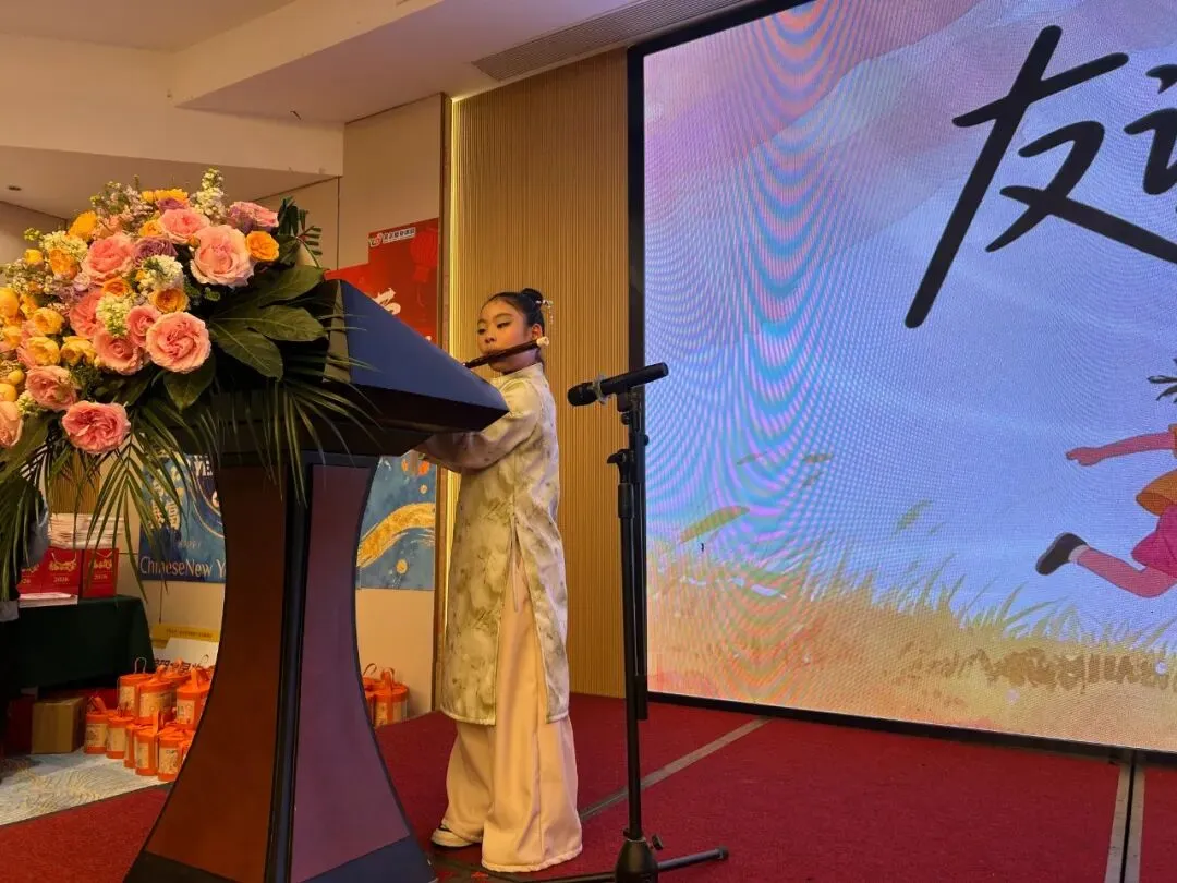 季书未同学身着传统服饰,手持笛子登场,悠扬的《友谊地久天长》旋律缓缓流淌,时而婉转悠扬,时而深情脉脉,让现场观众沉浸其中,掌声此起彼伏;