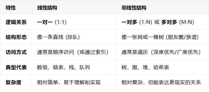 下面是线性结构和非线性结构的对比:
