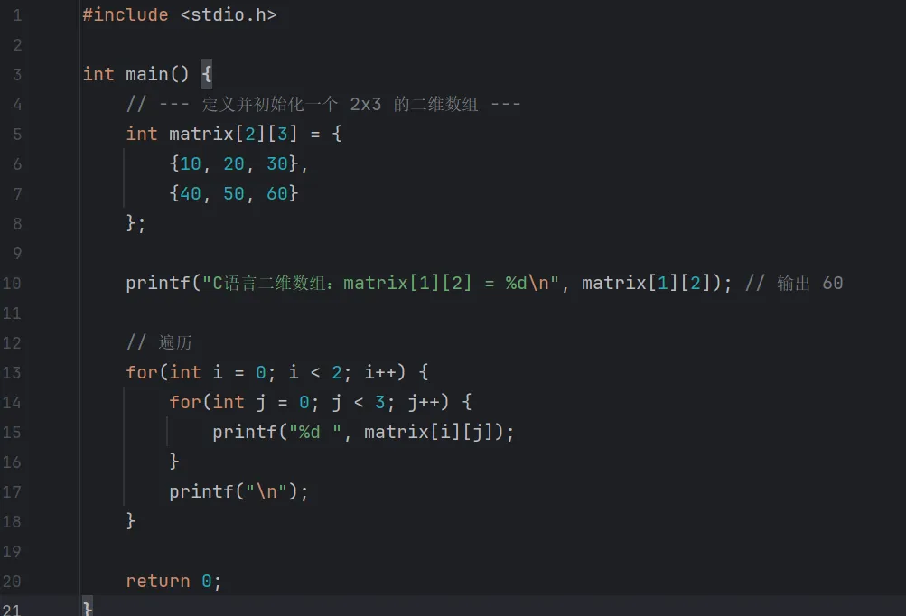C 语言实现 (二维数组)
