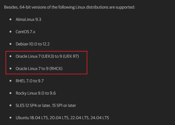 从 Veeam 官方支持矩阵上看,Oracle Linux 9 是在支持列表里的,乍一看没什么问题。但如果只看到“9”这个大版本,其实很容易被误导。