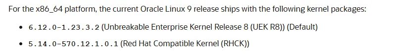 继续翻 Oracle Linux 9.6 的官方文档,再结合 uname -r 的输出: