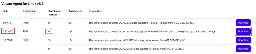 最后再分享一篇 KB 文档:https://www.veeam.com/kb2804,可以查询 Veeam Agent for Linux - veeamsnap 和 blksnap 扩展 Linux 发行版支持。