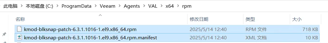 于是照着官方说明,把补丁下载解压后上传到 VBR 主机的指定目录 C:\ProgramData\Veeam\Agents\val\x64\rpm: