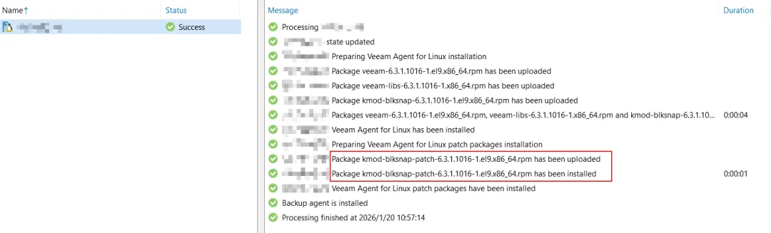 于是我又从 Veeam 的 rpm[2] 仓库里下载了对应版本的 kmod-blksnap、veeam-libs 以及 veeam agent,按顺序安装: