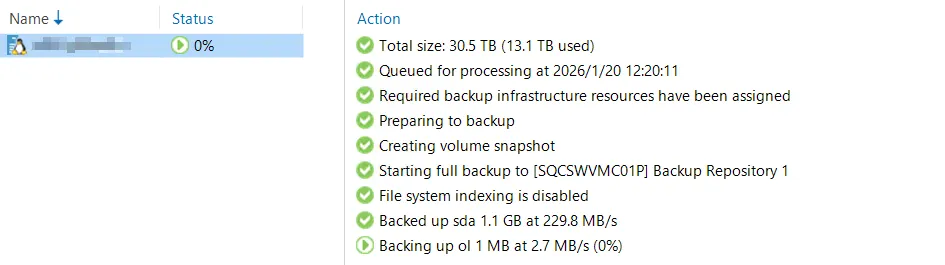 最近遇到一个挺折腾的问题:Veeam 12.3 给一台 Oracle Linux 9.6 的物理机做整机备份,怎么都跑不起来。