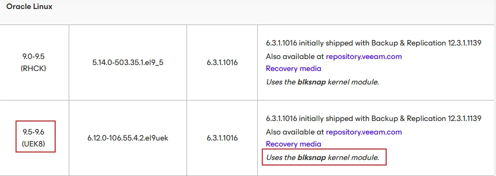 [3] Failed to load module [veeamblksnap] on Oracle Linux 9 with UEK R8 kernel: https://www.veeam.com/kb4732