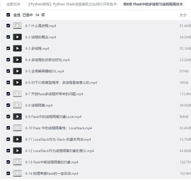- (全章节共14个视频,解决Flask多线程开发中的性能与安全问题)