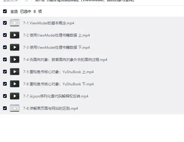 - (全章节共8个视频,掌握页面数据封装与代码重构技巧)
