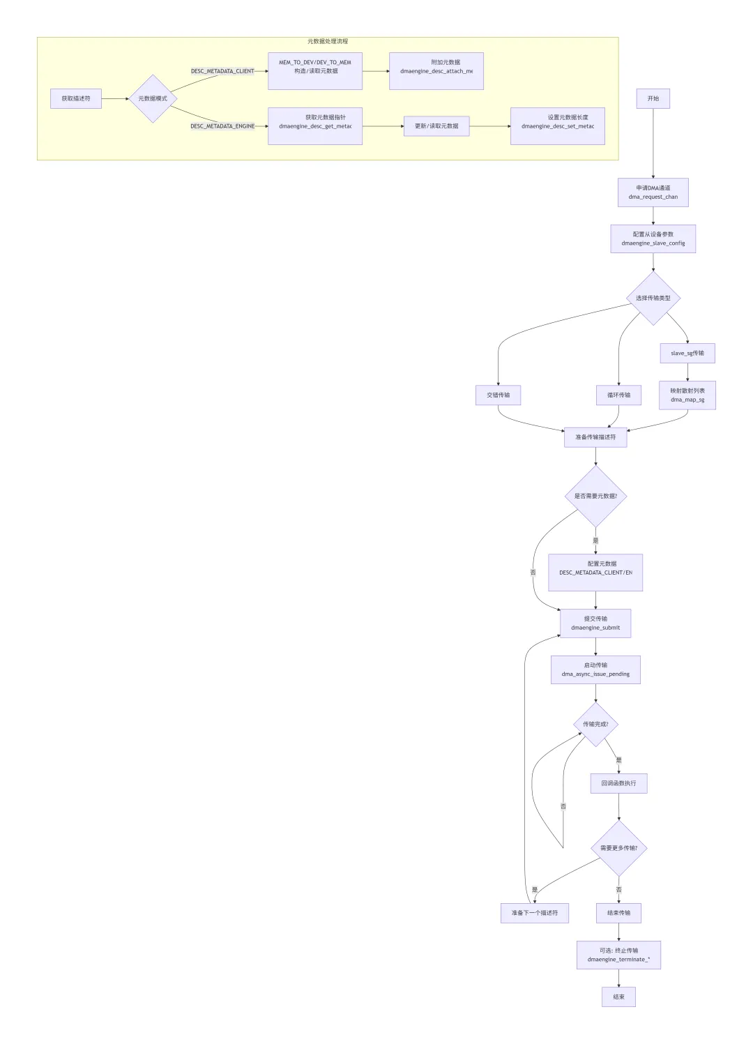 | 元数据操作 | dmaengine_desc_attach_metadata() | 附加客户端元数据 |