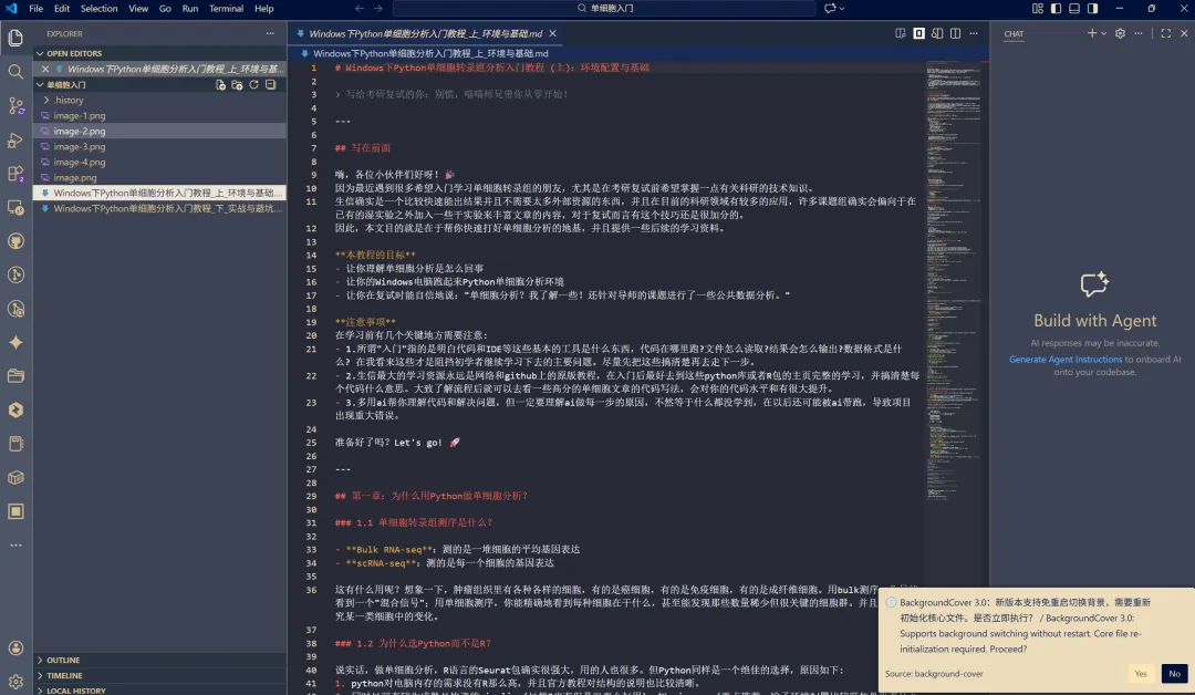 来看一下比如我打开一个文件夹,并打开我的代码(我打开的是.md文件,但不管是你打开.py还是.R都是一样的!):