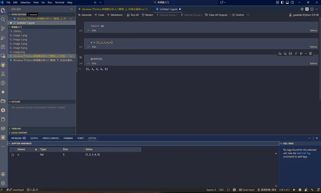 Ctrl + Shift + PJupyter: Create New Blank Notebookscanpy 环境作为内核很多用习惯Rstudio的研究者第一次使用vscode都会有点懵,我这里来一步步教会大家如何使用VS code。