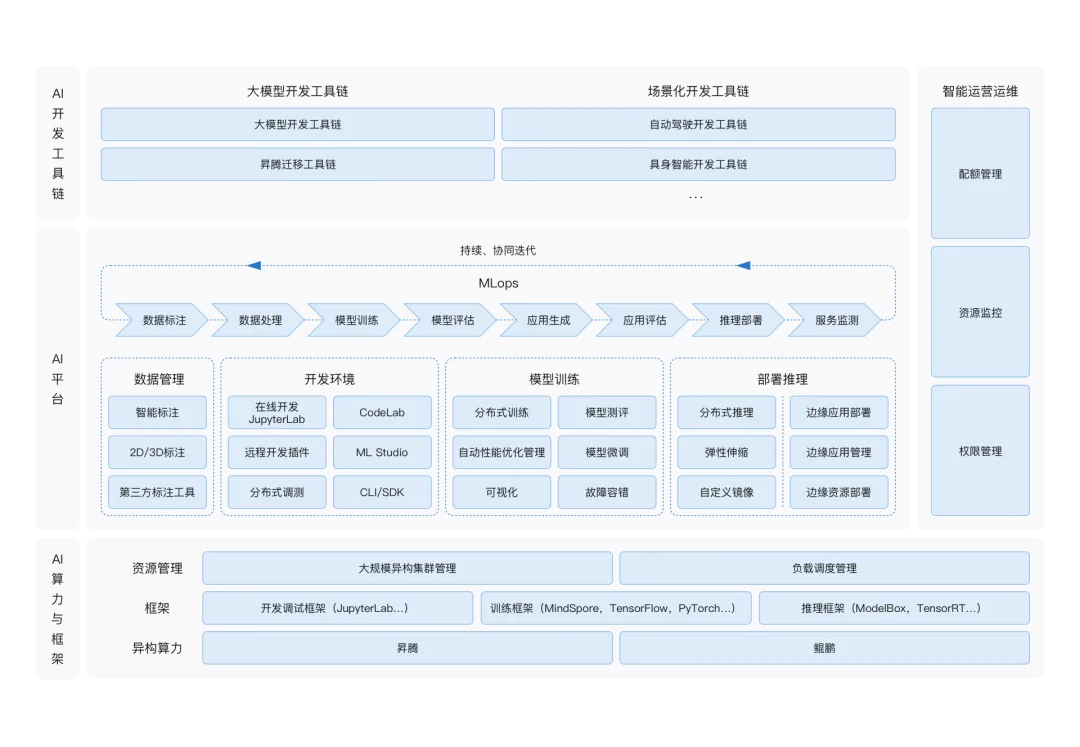 2、注重端-边-云协同部署:华为在硬件和边缘计算领域的优势体现在平台里。ModelArts对模型在端侧和边缘侧的部署优化提供了很好支持,适合物联网、工业质检等需要在靠近数据源头进行智能分析的场景。