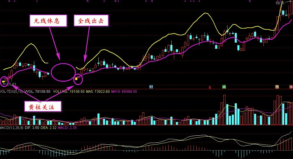 黄金组合策略1️⃣ 买点确认:黄色柱出现+当日成交量>5日均量2️⃣ 止损规则:跌破信号当日最低价3%立即离场3️⃣ 止盈技巧:股价偏离MA线15%时分批减仓