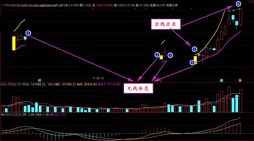 案例回测2025年12月光伏龙头股案例:📅 12/10出现黄色柱(收盘价32.1元),成交量激增200%📈 随后8个交易日上涨至38.7元(+20.5%)🎯 触发15%偏离止盈规则完美逃顶