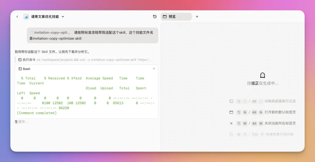 把这段话发出去,它就会开始构建Skill。