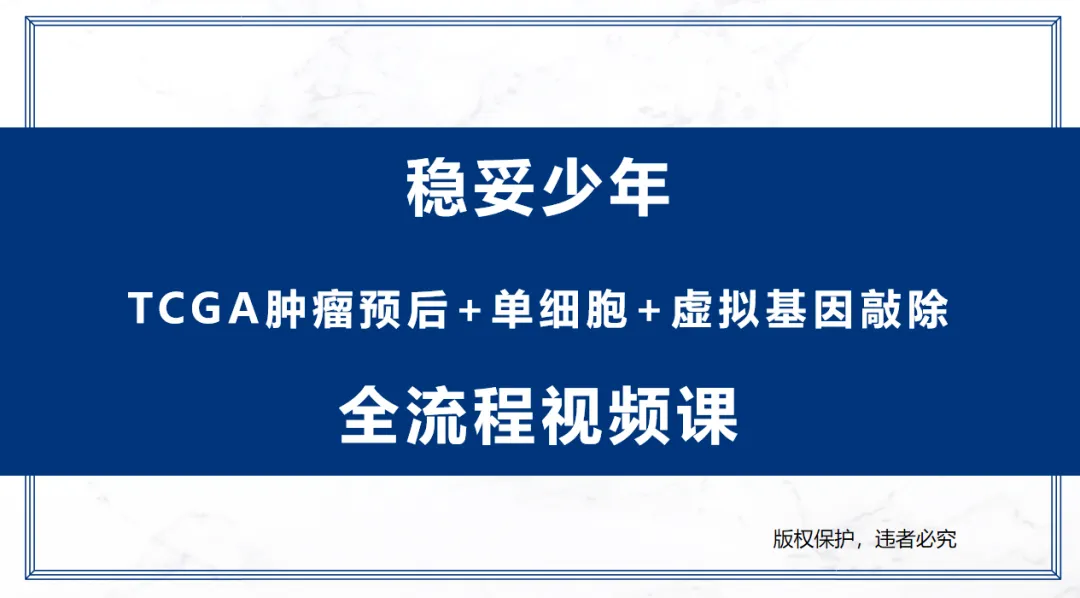 【淘宝】https://e.tb.cn/h.74PYbf9cYTjXRw9?tk=o9KTfxHXS3R CZ005 「稳妥少年【肿瘤预后+单细胞+基因敲除】全流程视频课」