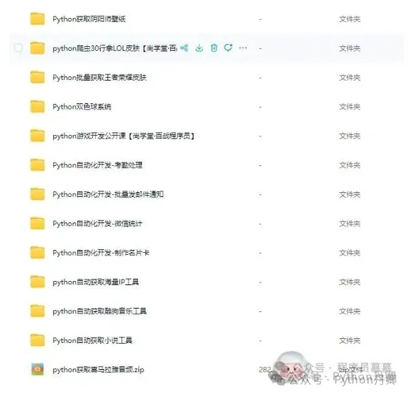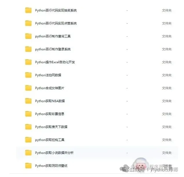 小型案例:百行代码实现抽奖系统、点赞系统、登录系统,Python 操作 Excel 自动化、批量生成 PPT 荣誉证书、PDF 转图片,还有网络爬虫实战(获取 NBA 数据、房天下数据、王者荣耀皮肤、阴阳师壁纸等)。