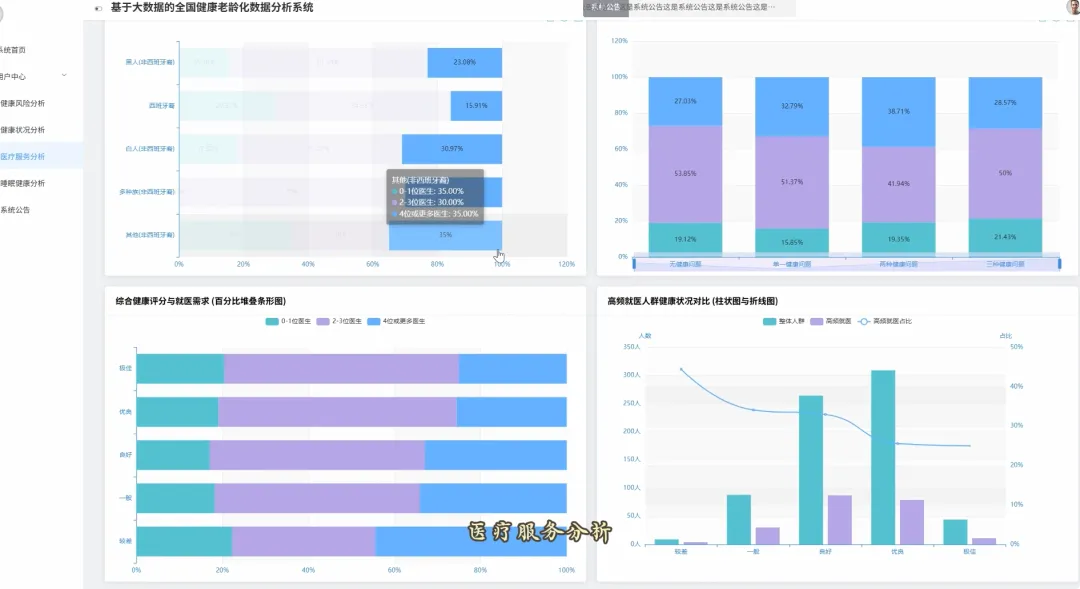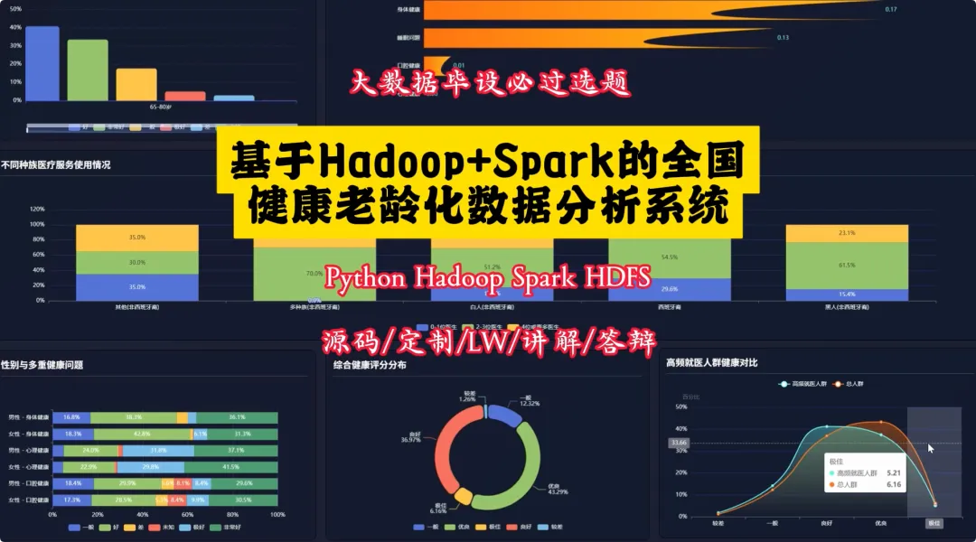 from pyspark.sql import SparkSessionfrom pyspark.ml.feature import VectorAssemblerfrom pyspark.ml.clustering import KMeansfrom pyspark.sql import functions as Fspark = SparkSession.builder.appName("HealthAgingAnalysis").getOrCreate()df = spark.read.csv("hdfs://path/to/health_data.csv", header=True, inferSchema=True)def health_risk_clustering(data): feature_cols = ["Physical Health", "Mental Health", "Dental Health", "Trouble Sleeping"] assembler = VectorAssembler(inputCols=feature_cols, outputCol="features") assembled_data = assembler.transform(data) kmeans = KMeans(featuresCol="features", predictionCol="cluster", k=3, seed=42) model = kmeans.fit(assembled_data) clustered_data = model.transform(assembled_data) cluster_analysis = clustered_data.groupBy("cluster").agg( F.avg("Physical Health").alias("avg_physical_health"), F.avg("Mental Health").alias("avg_mental_health"), F.avg("Dental Health").alias("avg_dental_health"), F.count("*").alias("cluster_size") ) return cluster_analysisdef health_correlation_analysis(data): data = data.withColumn("Physical_Health_Num", F.when(F.col("Physical Health") == "Excellent", 5) .when(F.col("Physical Health") == "Very Good", 4) .when(F.col("Physical Health") == "Good", 3) .when(F.col("Physical Health") == "Fair", 2) .otherwise(1)) data = data.withColumn("Mental_Health_Num", F.when(F.col("Mental Health") == "Excellent", 5) .when(F.col("Mental Health") == "Very Good", 4) .when(F.col("Mental Health") == "Good", 3) .when(F.col("Mental Health") == "Fair", 2) .otherwise(1)) correlation = data.stat.corr("Physical_Health_Num", "Mental_Health_Num") mental_group_analysis = data.groupBy("Mental Health").agg(F.avg("Physical_Health_Num").alias("avg_physical_score")) return correlation, mental_group_analysisdef high_frequency_visitors_analysis(data): high_freq_df = data.filter(F.col("Number of Doctors Visited") == "3") characteristics = high_freq_df.agg( F.avg("Physical Health").alias("avg_physical_health_status"), F.avg("Mental Health").alias("avg_mental_health_status"), F.count(F.when(F.col("Prescription Sleep Medication") == "Yes", True)).alias("sleep_med_users_count"), F.count("*").alias("total_high_freq_visitors") ) gender_distribution = high_freq_df.groupBy("Gender").count().withColumnRenamed("count", "gender_count") return characteristics, gender_distribution