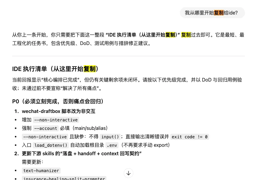 然后,也不用关心GPT说的是什么,让它告诉我从哪里复制给IDE。接下来就可以看GPT和GLM相爱相杀了。
