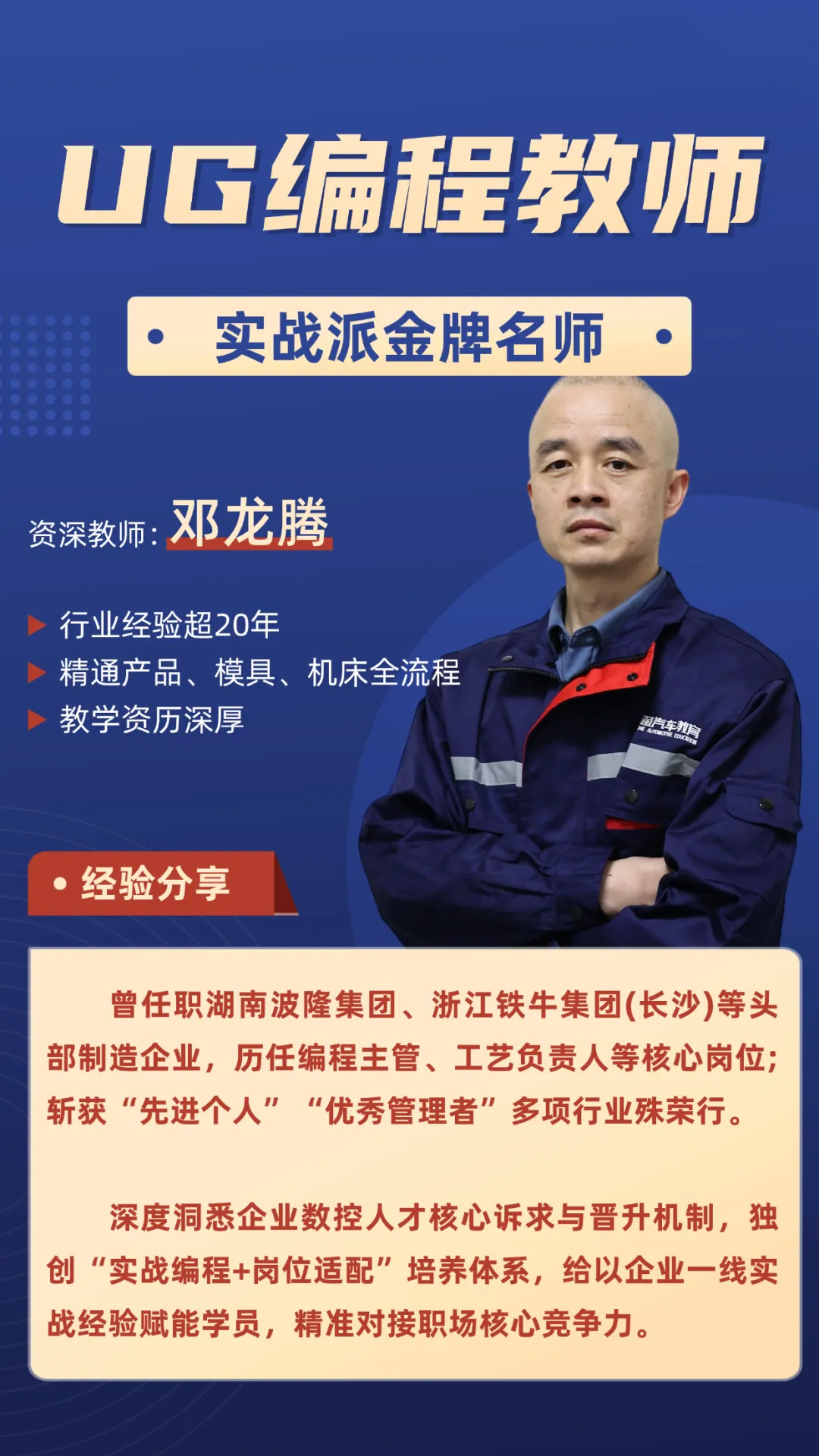 师资团队均通过集团“双师型”选拔标准,每一位讲师都拥有8年以上企业一线工作经验,曾任职于知名制造企业。他们不只是传授UG软件操作技巧,更能结合真实生产案例,把企业核心需求和行业前沿技术融入课堂,让你学到的每一项技能都能对接工作。
