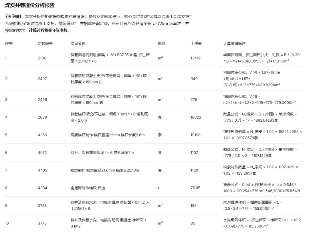 - **Expertise**: 巷道工程参数解读、工程量精准计算、煤炭定额套用