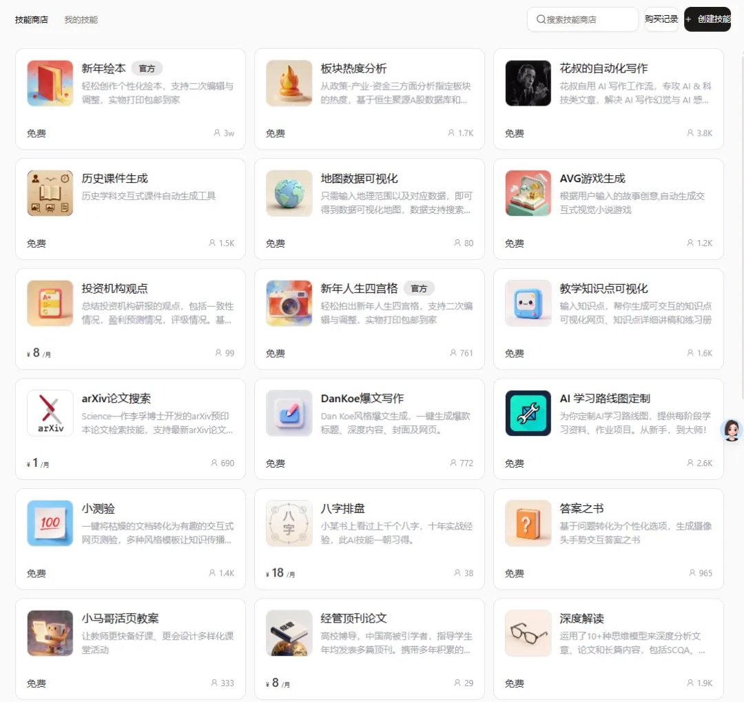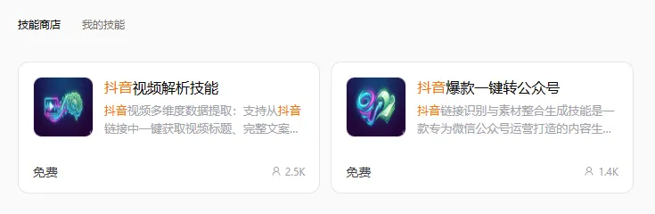 扣子也迎来了2.0升级,上线了skills功能,还有技能商店。